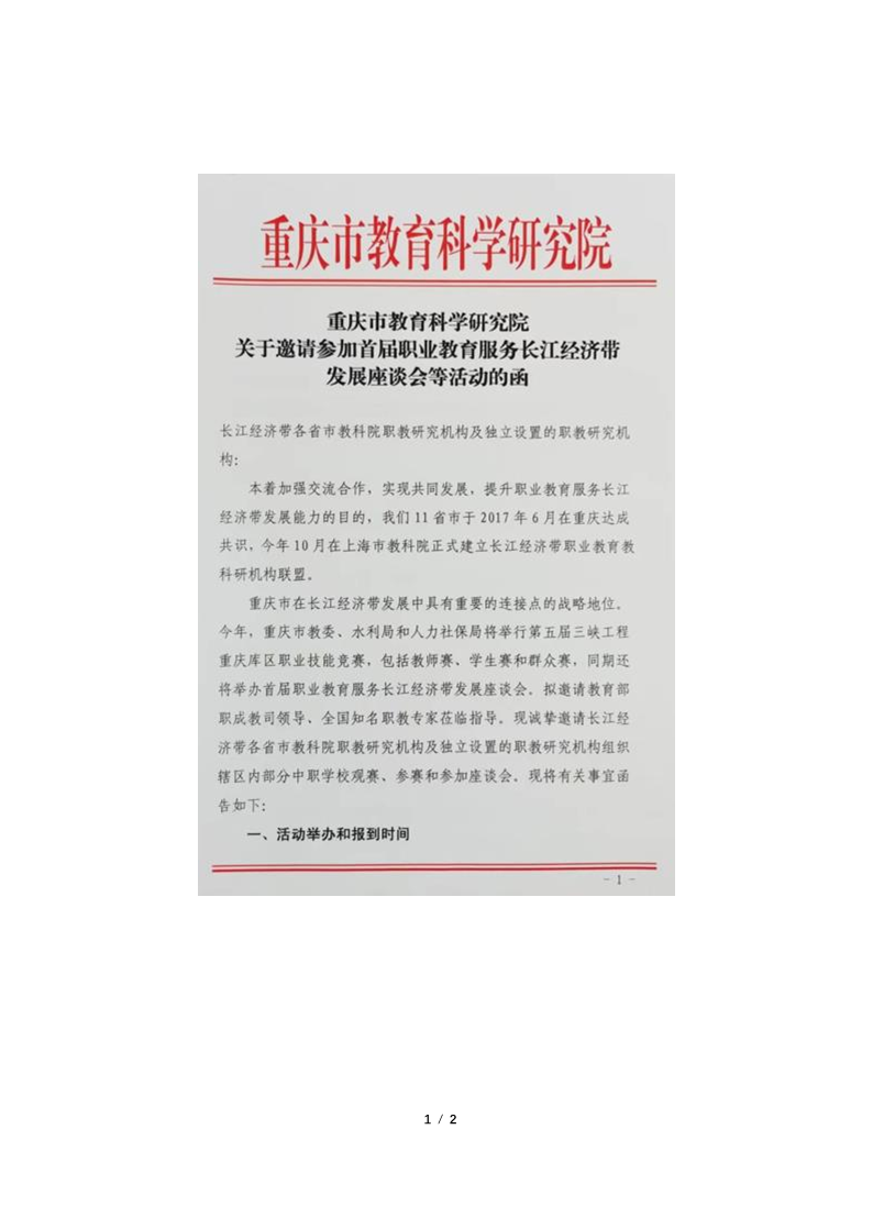 19.重庆市教科院关于邀请参加首届职业教育服务长江经济带发展座谈会等活动的函