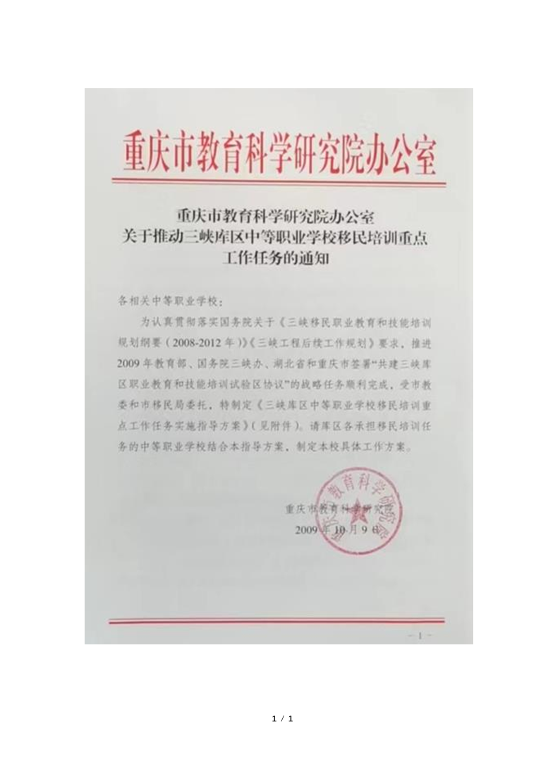 1.关于推动三峡库区中等职业学校移民培训重点工作任务的通知