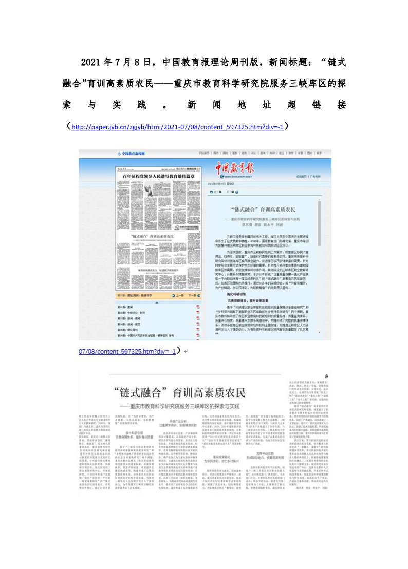 三峡库区职业教育国家试验区移民培训“链式融合”模式的创新与实践