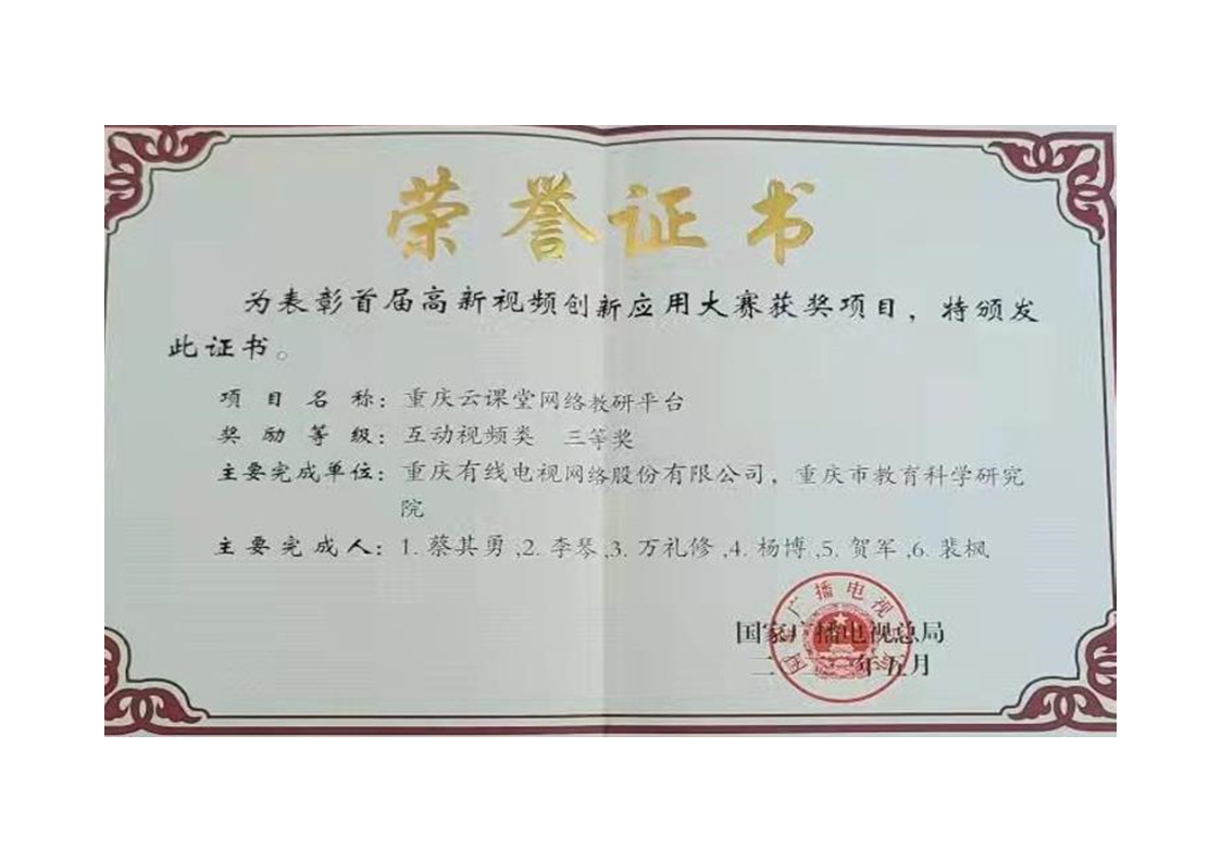 13首届高新视频创新应用大赛三等奖(国家广播电视总局)