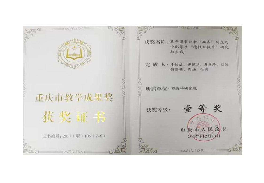 12.重庆市中职教学成果一等奖(重庆市人民政府)