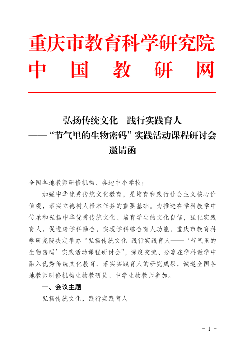 弘扬传统文化 践行实践育人 ——“节气里的生物密码”实践活动课程研讨会邀请函