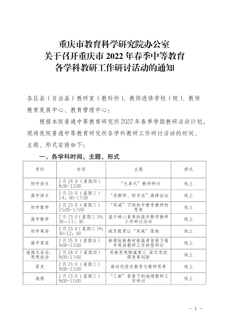 欧美色情片 办公室关于召开重庆市2022年春季中等教育各学科教研工作研讨活动的通知