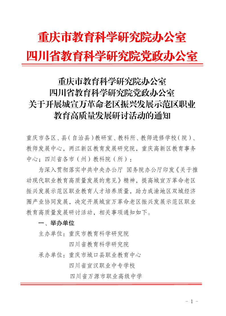 关于开展城宣万革命老区振兴发展示范区职业教育高质量发展研讨活动的通知