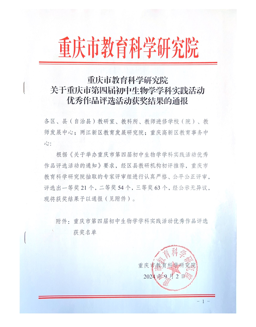 欧美色情片 关于重庆市第四届初中生物学学科实践活动优秀作品评选活动获奖结果的通报