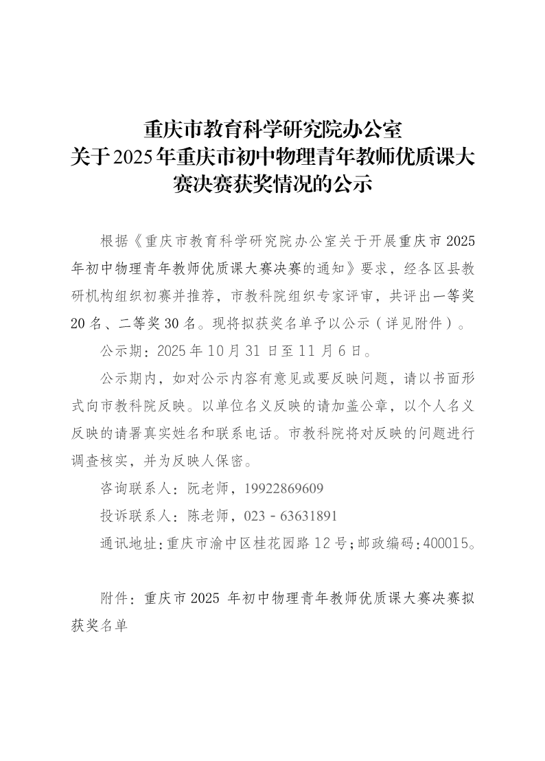 欧美色情片 办公室关于2025年重庆市初中物理青年教师优质课大赛决赛获奖情况的公示