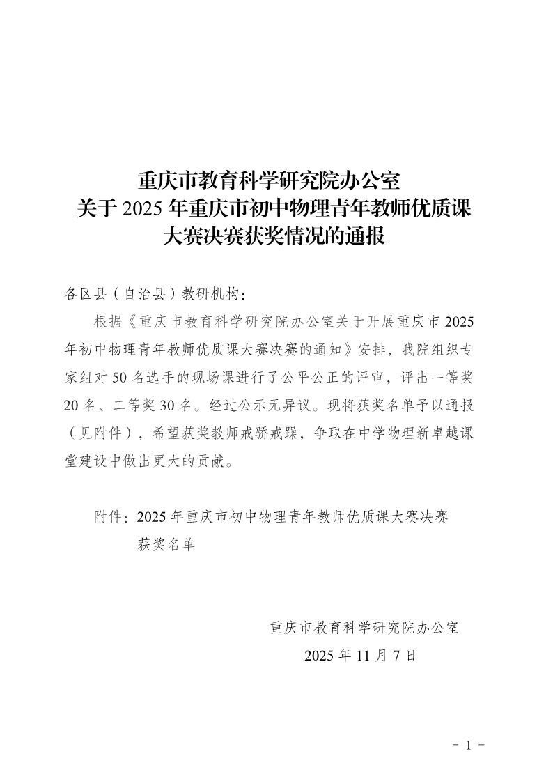 欧美色情片 办公室关于2025年重庆市初中物理青年教师优质课大赛决赛获奖情况的通报