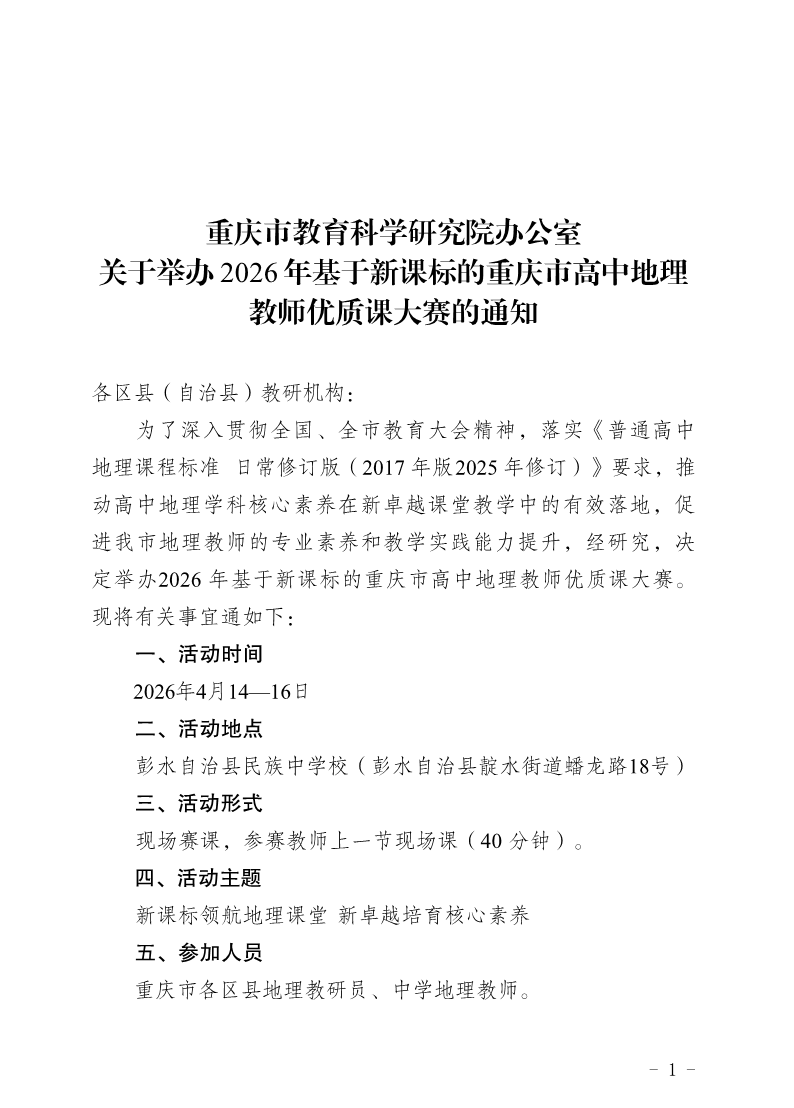 欧美色情片 办公室关于举办2026年基于新课标的重庆市高中地理教师优质课大赛的通知