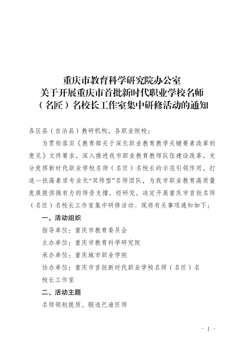 欧美色情片 办公室关于开展重庆市首批新时代职业学校名师 (名匠)名校长工作室集中研修活动的通知