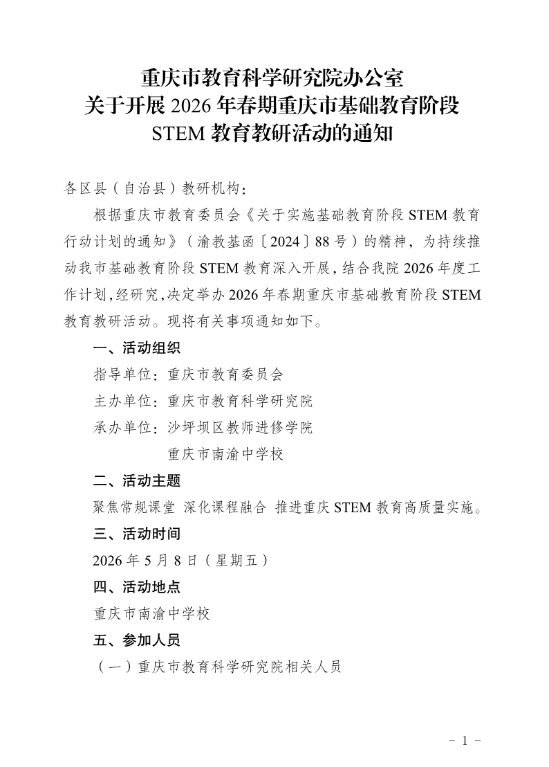 欧美色情片 办公室 关于开展2026年春期重庆市基础教育阶段STEM教育教研活动的通知