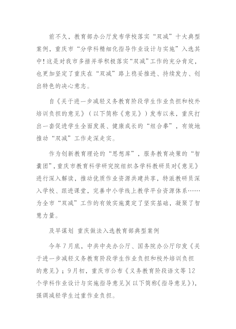 科研助力打好“双减”硬仗 减负提质增强百姓福祉