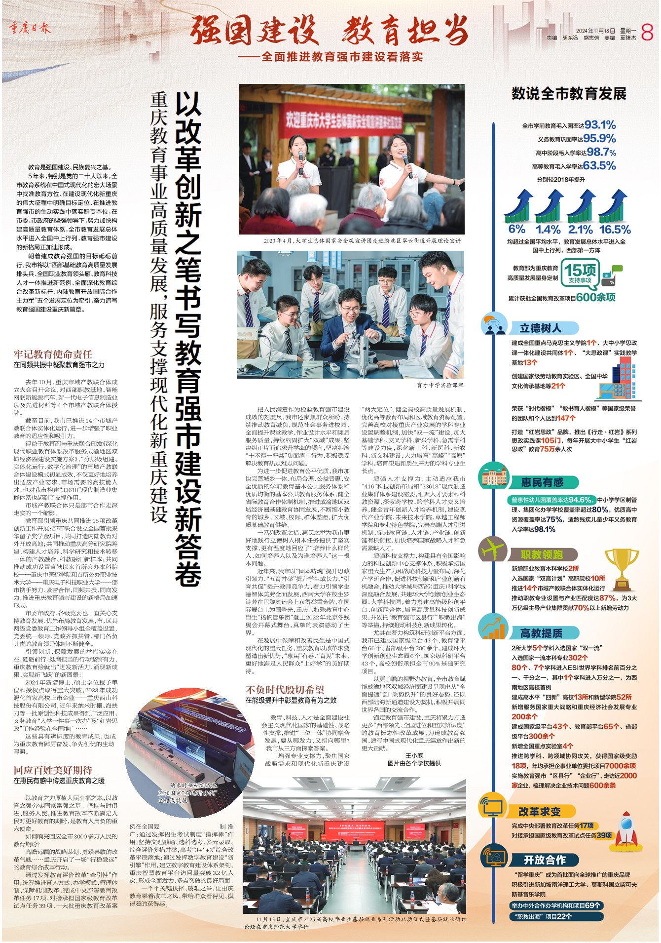 重庆教育事业高质量发展,服务支撑现代化新重庆建设 以改革创新之笔书写教育强市建设新答卷